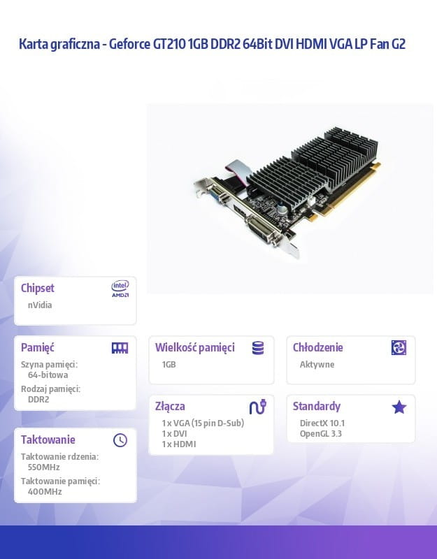 AFOX Karta graficzna Geforce GT210 1GB DDR2 64Bit DVI HDMI VGA Passive G2