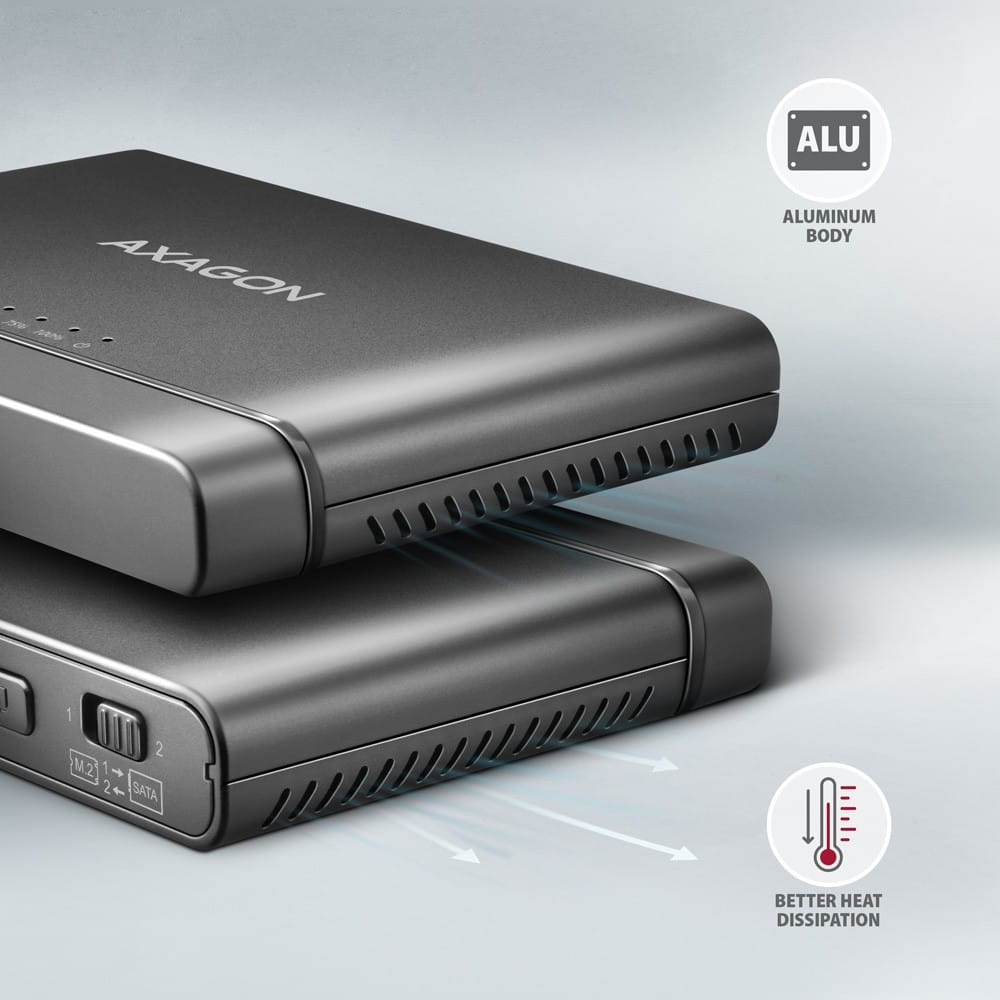 AXAGON ADSA-CC Adapter USB-C 10Gbps NVMe M.2 2.5/3.5 SSD&HDD Clone Master 2