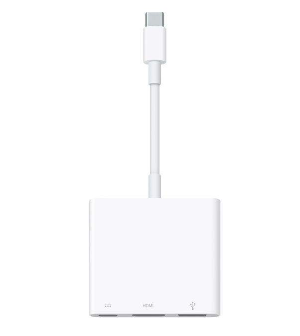Wieloportowa przejściówka z USBC na cyfrowe AV pozwala podłączyć Maca, iPada lub iPhonea z portem USBC do monitora HDMI przy jednoczesnym podłączeniu standardowego urządzenia USB i przewodu zasilającego USBC.