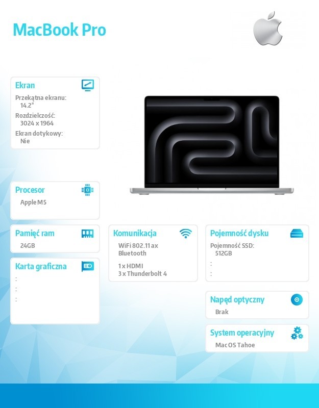 Apple MacBook Pro 14.2 cala: M5 10/10, 24GB, 512GB SSD, 70W - Srebrny