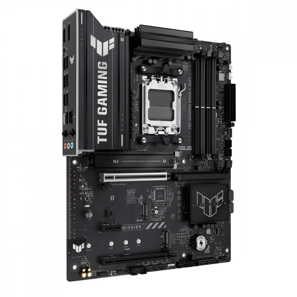 Płyta główna ASUS TUF GAMING B850-E WIFI łączy w sobie wszystkie najważniejsze elementy najnowszych procesorów AMD Ryzen z funkcjami gotowymi do gry i sprawdzoną wytrzymałością. Zaprojektowana z wykorzystaniem komponentów klasy wojskowej, ulepszonego układu zasilania i wszechstronnego systemu chłodzenia, ta płyta główna przekracza oczekiwania, zapewniając solidną i stabilną wydajność podczas maratonów gamingowych. Płyty główne TUF GAMING przechodzą również rygorystyczne testy wytrzymałościowe, aby upewnić się, że poradzą sobie w warunkach, w których inne mogą zawieść. Platforma ta zapewnia moc i łączność, jakich wymagają zaawansowane aplikacje komputerowe z AI.