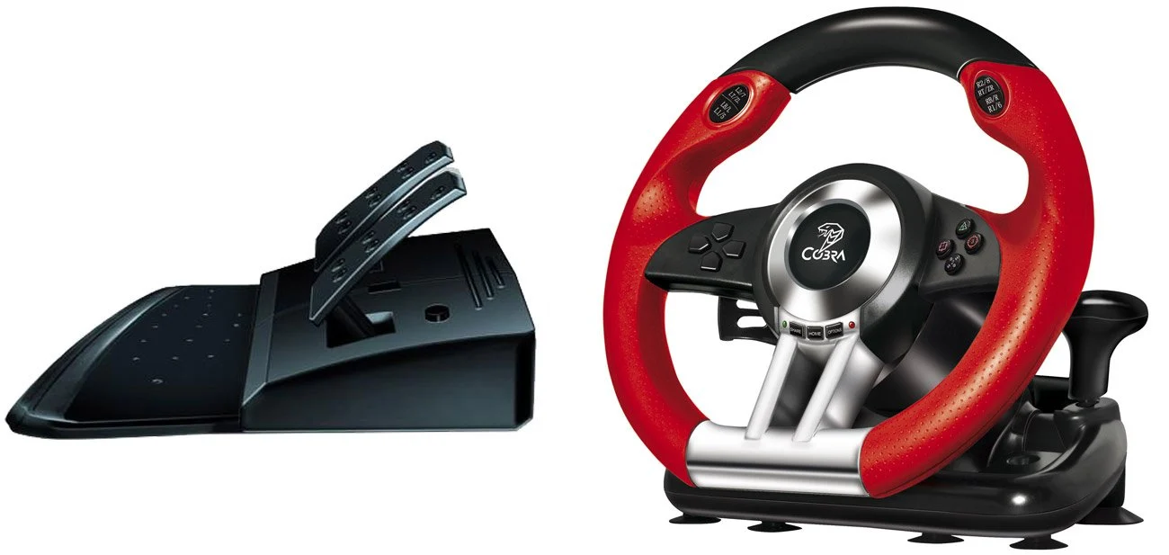 W zestawie z kierownicą znajdują się również ergonomicznie wykonane, przewodowe pedały gazu i hamulca.