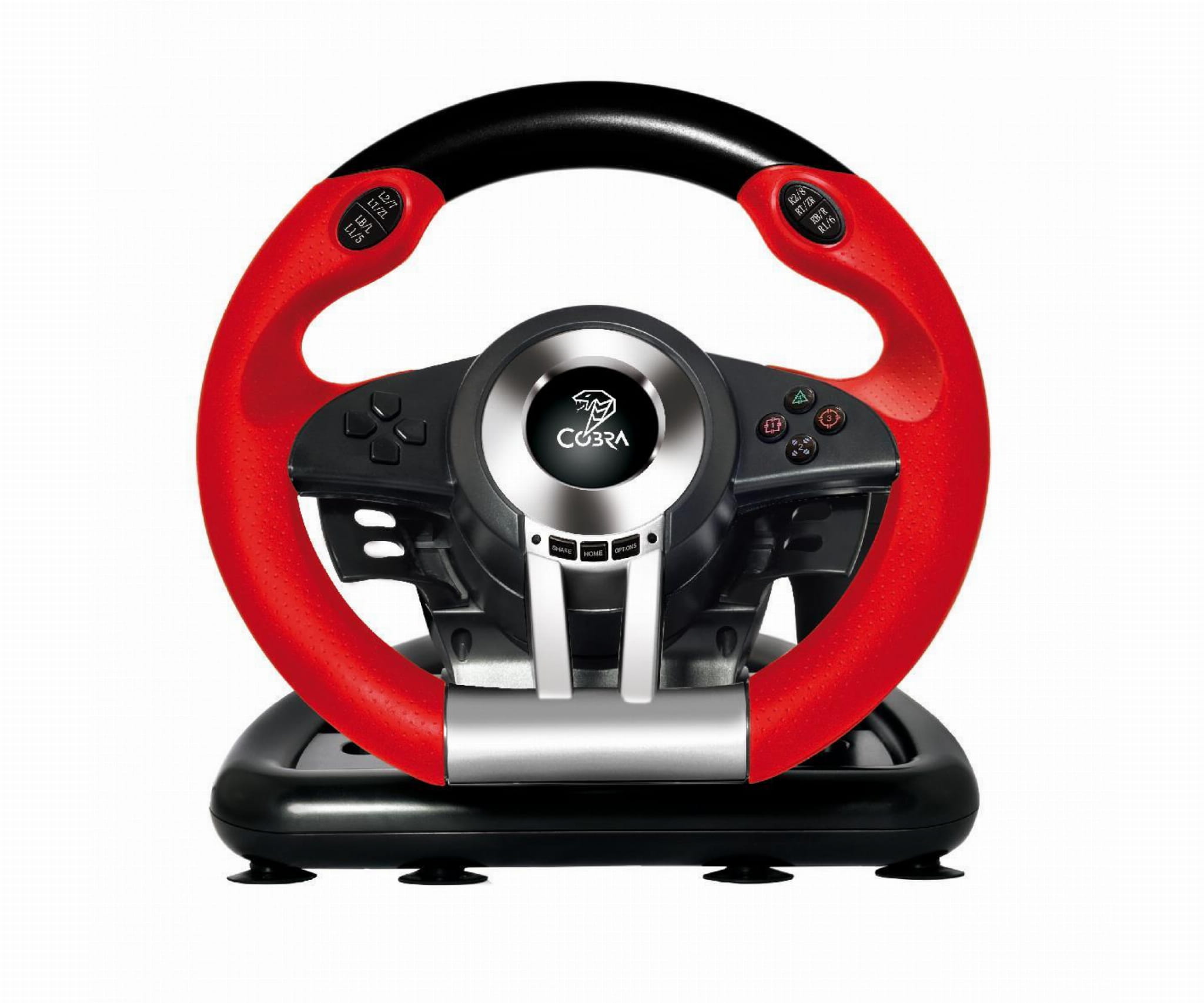 Duży kąt obrotu 180 stopni oraz dwa wbudowane silniki wibracyjne sprawiają że wyścigi stają się bardziej realne. Sześć przyssawek zapewnia stabilny montaż kierownicy do biurka. Możesz zmieniać biegi za pomocą starannie wykonanych manetek. Obręcz kierownicy została pokryta miłym w dotyku czerwonym materiałem co znacznie zwiększa wygodę jej użytkowania. Kierownica posiada również 10 przycisków funkcyjnych i dzwignię dwubiegunową.