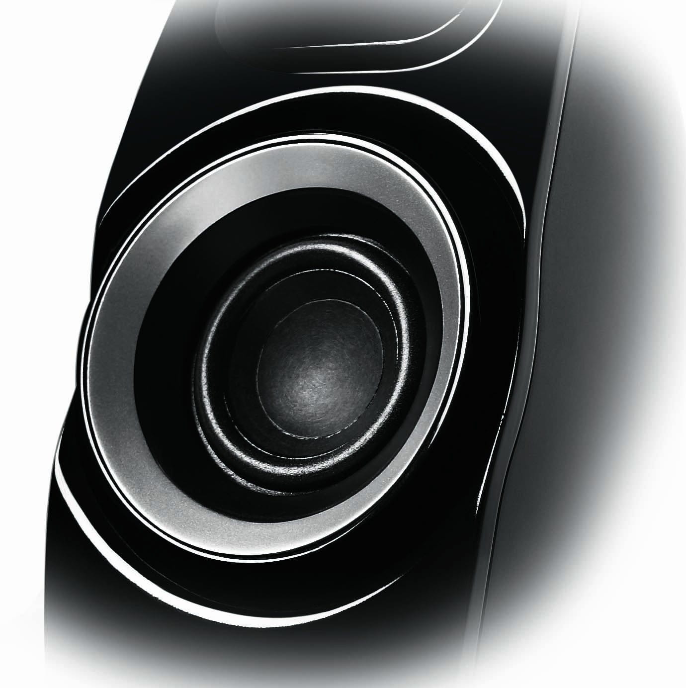 - Technologia Creative DSE (Dual Slot Enclosure) zapewnia scisle przyleganie przewodu do standardowego portu. Poprawia to rozklad czestotliwosci w calym systemie, zapewniajac glosniejszy dzwiek i wyrazniejsze srednie basy.