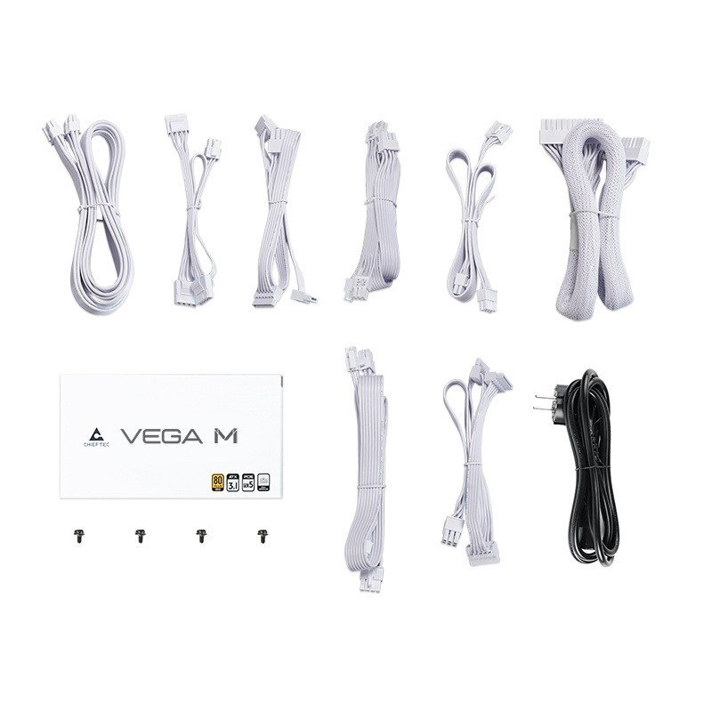 Zasilacze serii CHIEFTEC Vega M są zgodne ze standardem Intel ATX 12V 3.1 i wspierają PCIe GEN5 z certyfikowaną efektywnością 80PLUS Gold. Przekonują konkurencyjnym stosunkiem ceny do wydajności, pozostając wiernymi sprawdzonej jakości Chieftec. Seria Vega M wyposażona jest w konwerter LLC Half-Bridge z technologią DC-to DC, zapewniającą lepszą efektywność energetyczną i stabilność. W pełni modułowa konstrukcja z wyjątkowo długimi czarnymi kablami sprawia, że jest to idealne rozwiązanie dla graczy, którzy chcą zbudować swój system, nawet w większych obudowach komputerowych. Dodatkowo, 135-mm wentylator FDB optymalizuje równowagę między wydajnością chłodzenia a poziomem hałasu. Seria Vega M to Twoje zaufane, niezawodne rozwiązanie dla wszystkich potrzeb komputerowych, wyposażone we wszystkie niezbędne, nowoczesne funkcje ochrony i bezpieczeństwa.