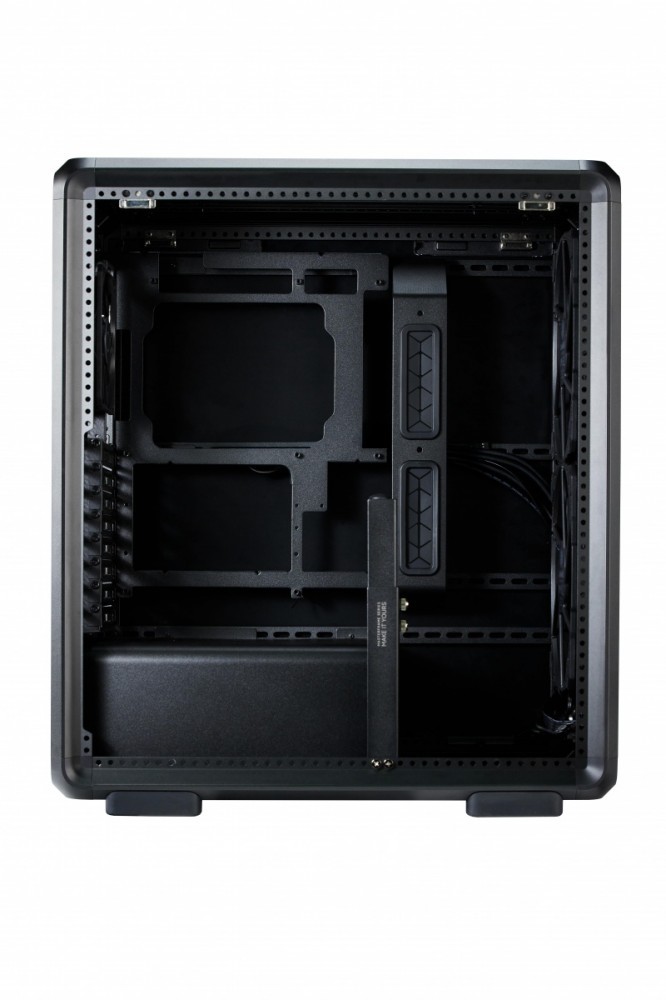 Opcjonalne wentylatory: 3 x 120 mm lub 2 x 140 mm lub 2 x 180 mm lub 2 x 200 mm (góra), 1 x 120 mm (tył), 3 x 120 mm lub 2 x 140 mm lub 2 x 180 mm lub 2 x 200 mm (przód), 1 x 120 mm (dół)