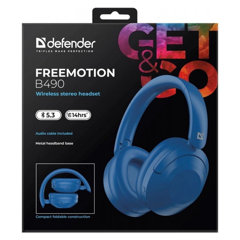Defender Słuchawki bezprzewodowe nauszne FREEMOTION B490 Niebieskie
