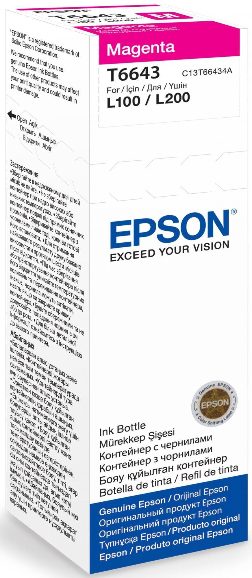 Tusz Epson [T6643] magenta oryginalny ma zastosowanie w kilku modelach drukarek producenta tego wkładu atramentowego. Warto zwrócić uwagę na pojemność wkładu, która wynosi 70 ml, co przekłada się na możliwość wydrukowania aż 6500 stron i jest to wynik imponujący.
