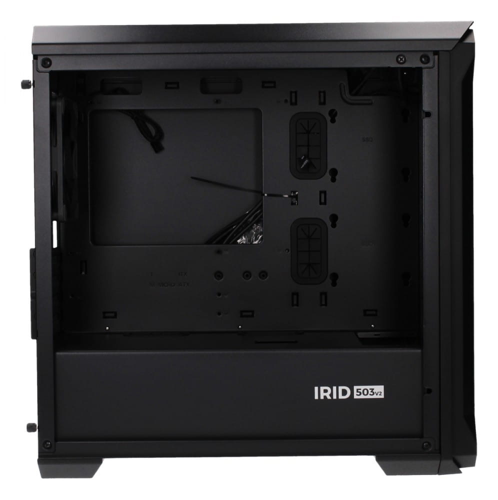 Irid 503 V2 wyposażono w perforowany przód, a panel boczny wykonano z przejrzystego szkła hartowanego, które pozwala mieć na oku pracujące komponenty. Obudowę wyposażono w dwa wentylatory Genesis Oxal 120, które doskonale zadbają o odpowiednią cyrkulację powietrza.
