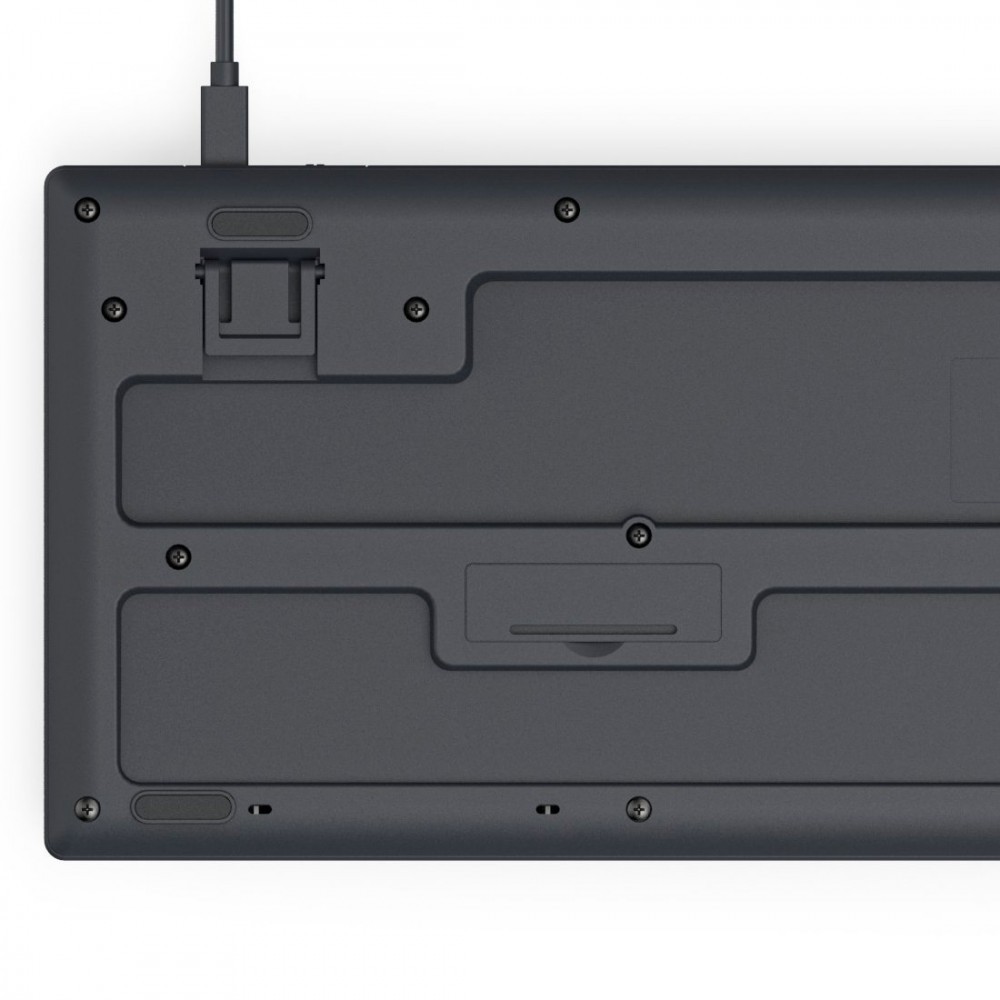 Odczepiany kabel USB jest także wyjątkowo praktycznym rozwiązaniem podczas podróży. Dzięki tej funkcji nie trzeba wyginać przewodu na czas transportu, co zmniejsza ryzyko jego uszkodzenia. Po prostu odłącz kabel, zabezpiecz go dołączonym do zestawu paskiem z rzepem i ciesz się wygodą, jaką oferuje możliwość łatwego przechowywania klawiatury.