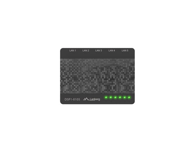Lanberg DSP1-0105 to niewielkich rozmiarów niezarządzalny desktopowy przełącznik, wyposażony w 5 portów Fast Ethernet. Urządzenie jest niewielkie i poręczne oraz działa na zasadzie Plug&Play. Przełącznik zapewnia wsparcie funkcji przełączania dla 5 portów RJ-45 10/100 Mbps wraz z automatyczną negocjacją połączenia oraz obsługą MDI-MDIX.