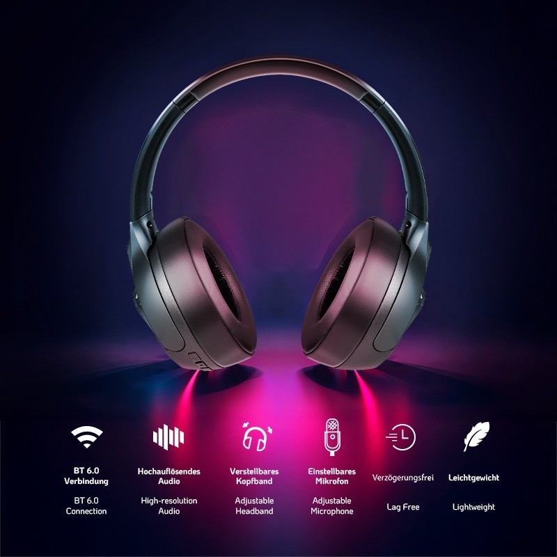 Pozostałe parametry: Zestaw słuchawkowy do gier BT 6.0 Złącze AUX 3.5 mm Pierwszorzędna jakość dźwięku Mikrofon 360° niwelujący hałas Miękkie nakładki na uszy z pamięcią kształtu Regulowany pałąk Żywotność baterii do 50 godzin Typ nauszny Średnica przetworników 40 mm