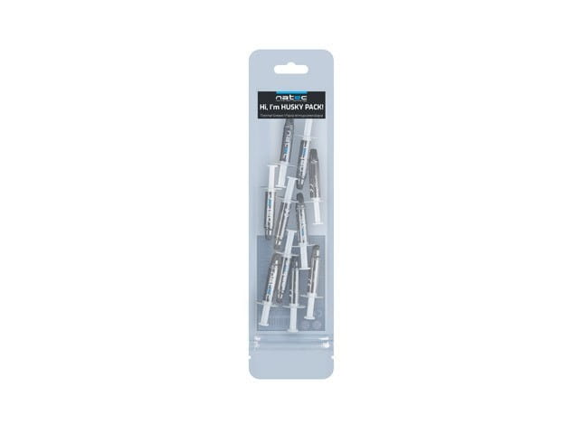 Natec Husky Pack to pasta termoprzewodząca o wysokich parametrach przewodzenia ciepła oraz niskiej rezystancji termicznej. Pasta nie przewodzi prądu, nie koroduje oraz nie wymaga okresu wygrzewania (optymalny transfer ciepła już od pierwszego cyklu używania).