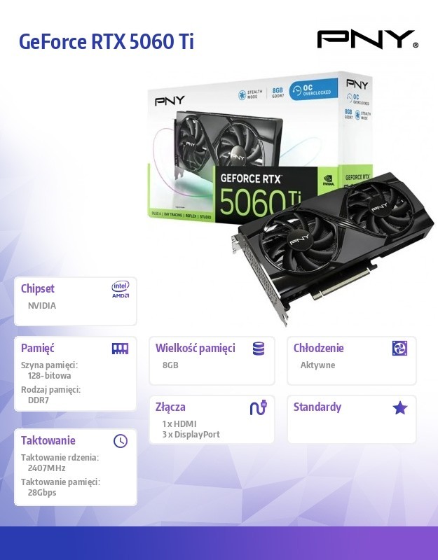 PNY Karta graficzna GeForce RTX 5060 Ti OC 8GB VCG5060T8DFXPB1-O