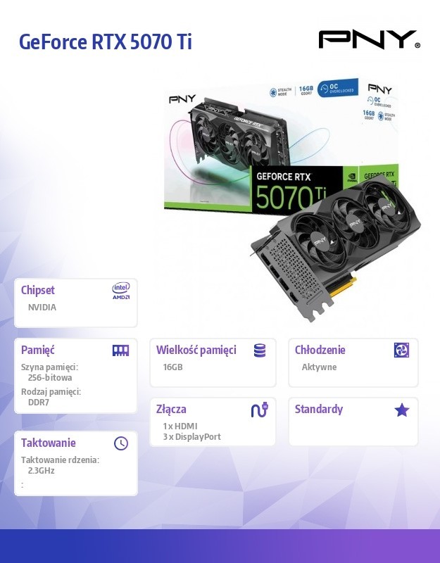 PNY Karta graficzna GeForce RTX 5070 Ti OC 3F 16GB 256-bit 896GB/s