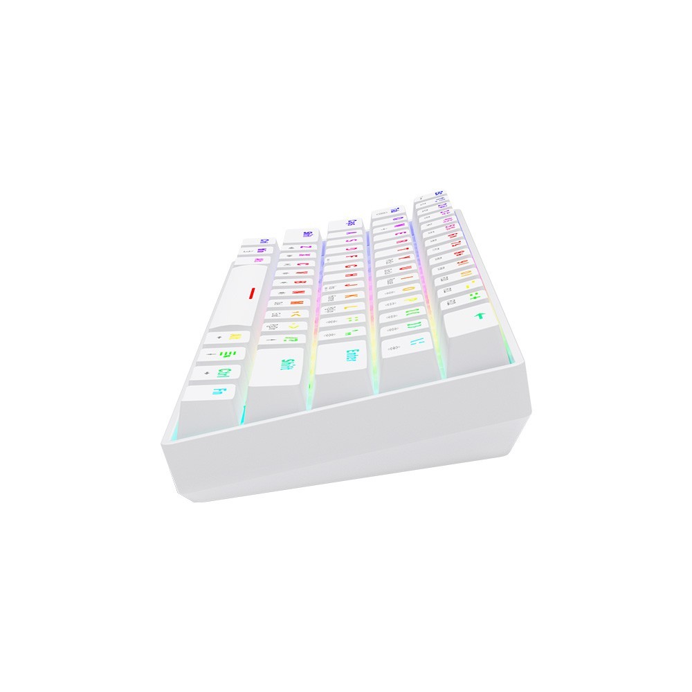 Pozostałe parametry: Typ klawiatury: Mechaniczna Układ klawiatury: US (61 klawiszy) Interfejs: USB Keycapy: ABS Przełączniki: OUTEMU Blue Żywotność przełączników: 50 000 000 kliknięć Hot Swap: Tak Waga klawiatury: 570 +/- 20 g Oprogramowanie: Tak N-key rollover & Anti-ghosting: Pełny Obsługa makr: Tak