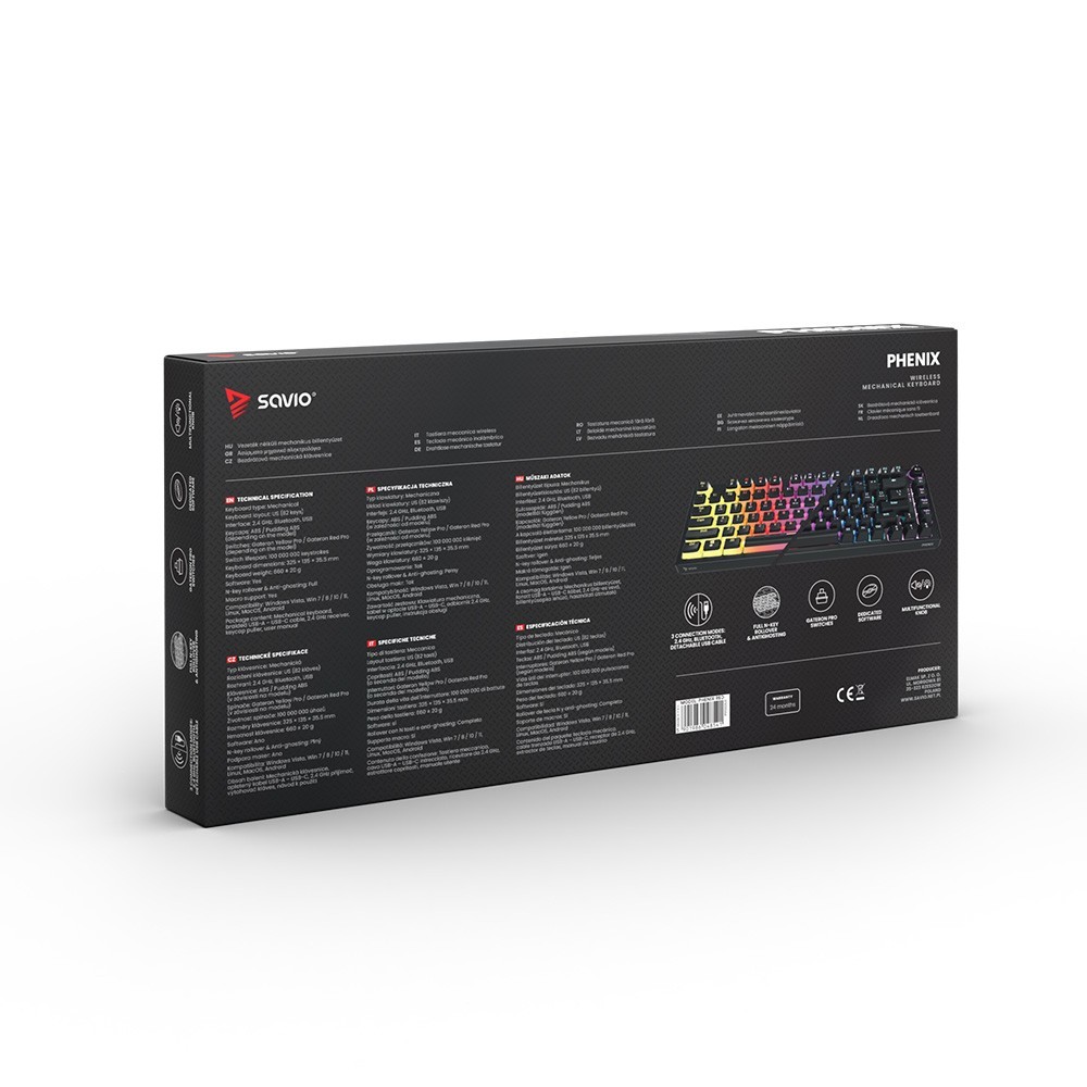 Savio Klawiatura mechaniczna bezprzewodowa PHENIX, Gateron Red Pro, Pudding