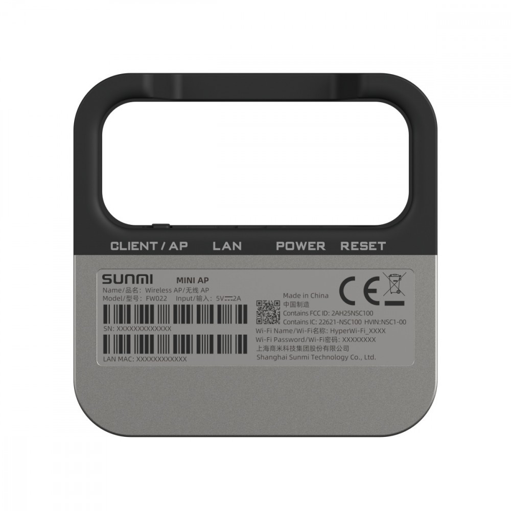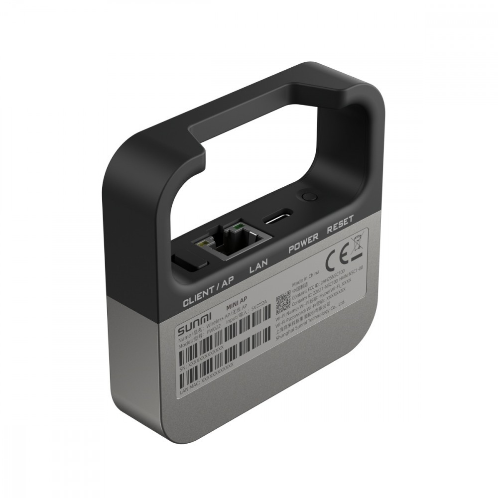 Nasz protokół sieciowy SUNMI Link oferuje użytkownikom opcję plug and play, umożliwiającą podłączenie urządzeń do sieci bezprzewodowej za pomocą jednego naciśnięcia przycisku. MINI AP ma dwa tryby: AP (nadajnik) i Klient (odbiornik). W takim przypadku sprzedawcy mogą elastycznie przełączać swoje urządzenia pomiędzy dwoma trybami połączenia Hyper Wi-Fi, eliminując potrzebę zakupu dodatkowych urządzeń.