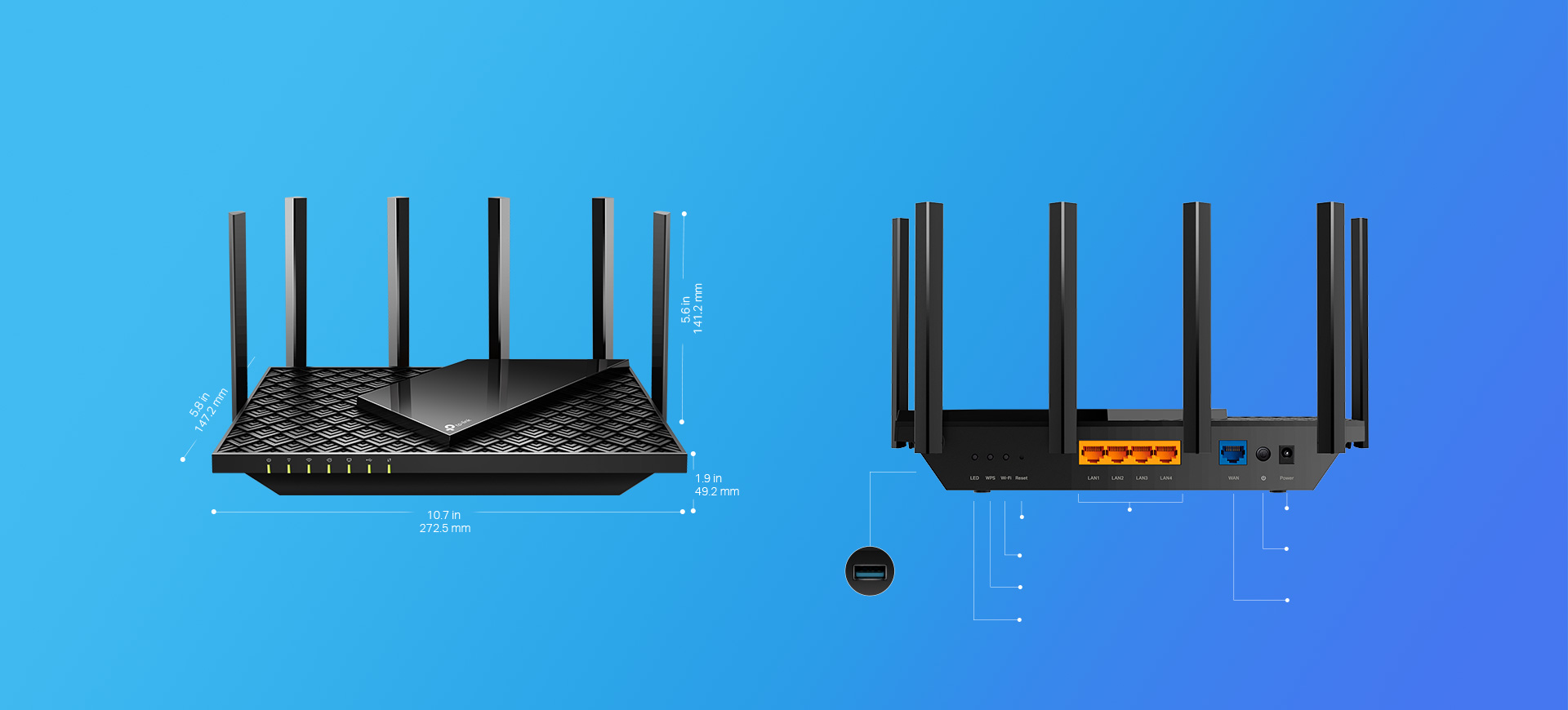 Przeplatane na ukos prostokątne elementy, które tworzą górną płaszczyznę obudowy urządzenia, przywodzą na myśl zbroję łuskową w eleganckim, współczesnym wydaniu. Aż 167 cm² (25 cali²) tej powierzchni służy do wentylacji routera, co w rezultacie usprawnia odprowadzanie ciepła i pozwala na wydajną pracę urządzenia.