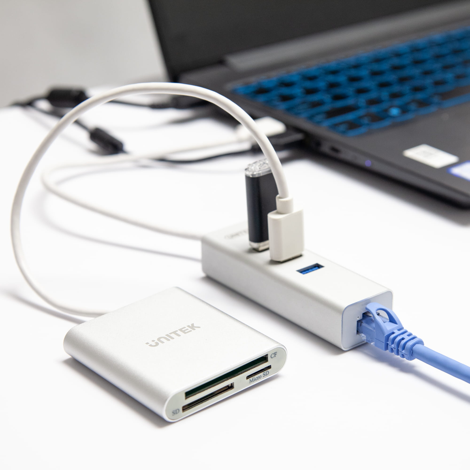USB 3.0 zapewnia szybki transfer danych z prędkością 5Gbps, jest wstecznie kompatybilny z USB 2.0 i 1.1. Czytnik jest zasilany bezpośrednio przez USB, więc nie wymaga dodatkowych przewodów zasilających. W ofercie marki Unitek znajduje się także czytnik kart z adapterem na USB typu C w zestawie (Y-9313D).