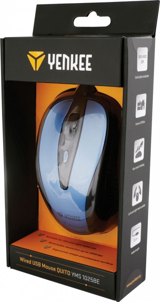 YENKEE Mysz przewodowa USB , 4 przyciski, optyczna, symetryczna, Błękit