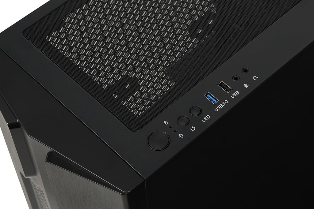 Obudowa wyposażona jest w filtr mocowany magnetycznie, ograniczający dostęp kurzu do wnętrza. Boczny panel wykonany został z wytrzymałego, hartowanego szkła, zapewniającego niesamowitywygląd połączony z solidną konstrukcją. Na froncie obudowy zamontowany został cichy wentylator w rozmiarze 140 mm - podświetlany diodami LED. Z tyłu producent umieścił jeden wentylator 120 mm, zapewniający doskonałe odprowadzanie ciepła z wnętrza obudowy. Czarna, elegancka struktura poza walorami estetycznymi, dostarcza multum praktycznych rozwiązań. Zasilacz odseparowany jest od pozostałych podzespołów dzięki specjalnie zaprojektowanemu tunelowi. Porty USB, włącznik, reset, przycisk wł/wył oświetlenia LED oraz porty HD Audio znajdują się na górze obudowy.